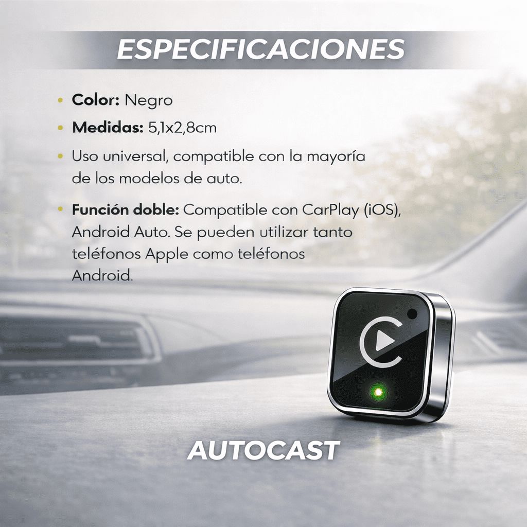 AutoCast® – CarPlay Inalámbrico USB sin Cables con Apps Pagos Incluidos🤩